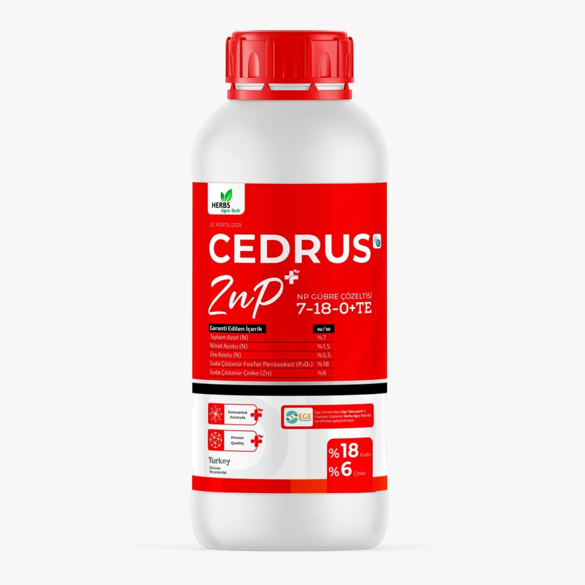 CEDRUS ZnP* kök ve tomurcuk gelişimine aynı zamanda çiçeklenme ve meyve gelişimine destek olmak için hazırlanmış sıvı bir üründür.Erken bitki döngüsünde vejetatif üretgenliği teşvik eder. Kök gelişimini destekler, su ve mineral emilimini güçlendirerek bitkinin toprağa tutunma gücünü geliştirir. Bitkiyi strese karşı korur. İçerdiği fosfor kök gelişimi, erkencilik, çiçeklenme, meyve tutumunu içerdiği çinko enzim sentezi, oksin oluşumunun kontrolü ile bitkisel aktivitenin başlaması tetiklenir.